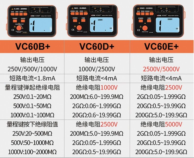 淘宝胜利VC60B+/VC60D+绝缘电阻测试仪/VC60E+/VC60F/H兆欧表绝缘摇表