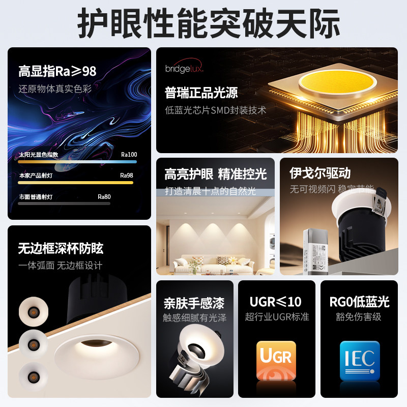 天猫至御护眼射灯小山丘天花灯嵌入式无边框防眩筒灯客厅无主灯8550X