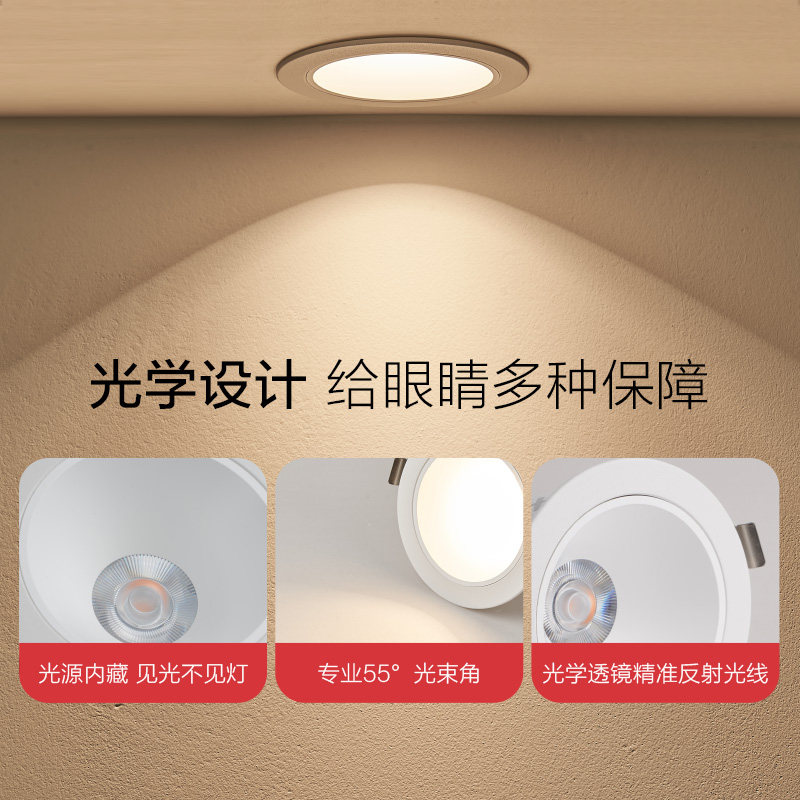 天猫欧普照明全光谱护眼筒灯洗墙嵌入式射灯家用防眩天花孔灯智慧光