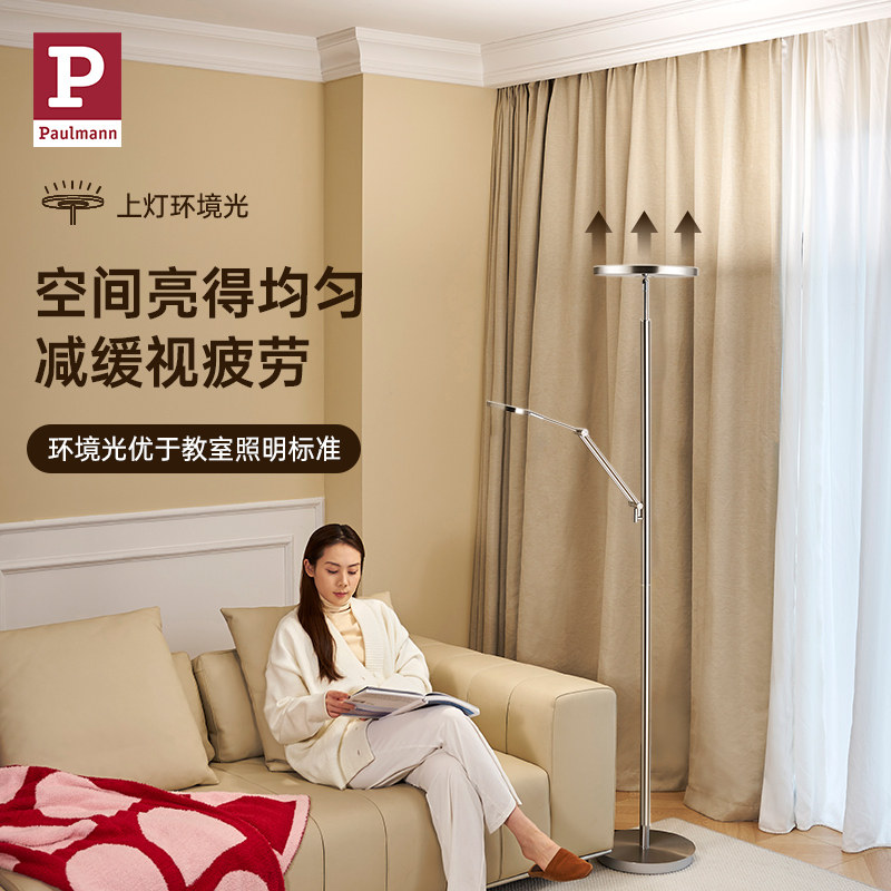 德国柏曼客厅护眼落地灯,以简约现代设计融合高级质感,专为阅读与学习打造。采用子母双光源设计,主灯提供均匀环境光,辅灯聚焦局部照明,满足不同场景需求。光线柔和均匀,无频闪、低蓝光,有效缓解视觉疲劳,守护双眼健康。灯体选用优质金属材质,线条流畅,稳重大气,轻松融入现代书房、客厅或卧室空间。高度可调节,灯头可多角度旋转,灵活适配阅读姿势。无论是深夜读书、工作学习,还是营造温馨氛围,这款立式护眼落地灯都以德系精工品质,为您带来舒适、健康、优雅的照明体验。