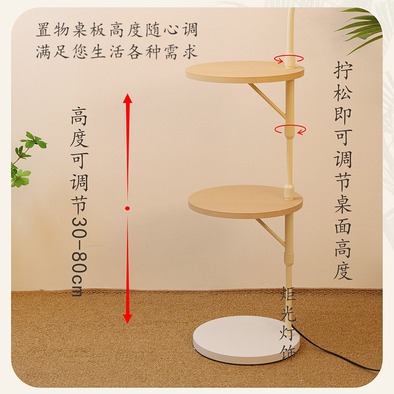 淘新款法式奶油风落地灯客厅卧室床头沙发氛围感艺术置物架台灯一体