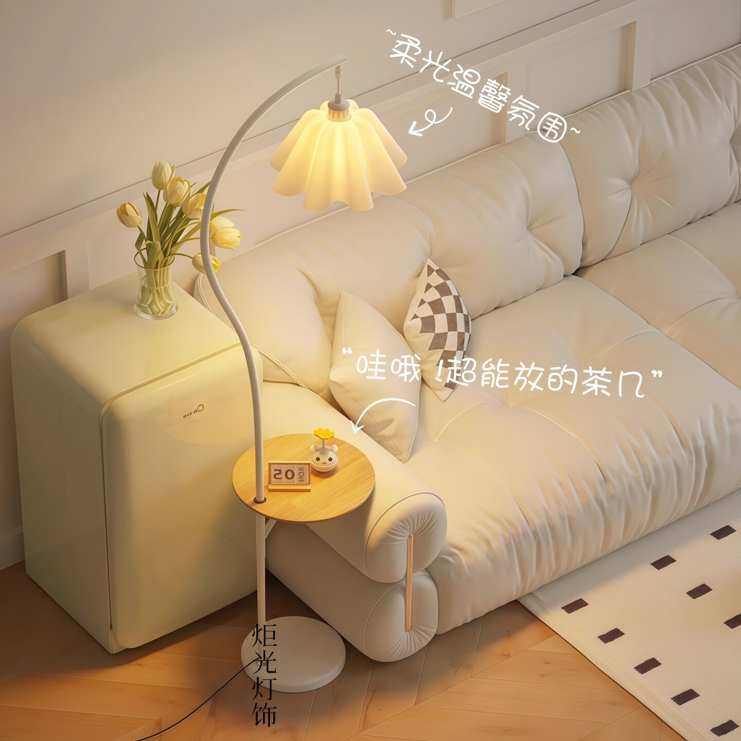 淘宝奶油风落地灯可升降桌面客厅钓鱼灯沙发旁卧室立式台灯床头氛围灯