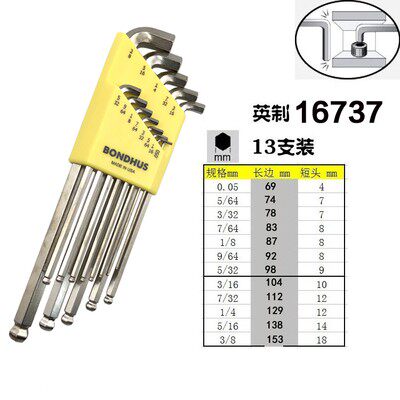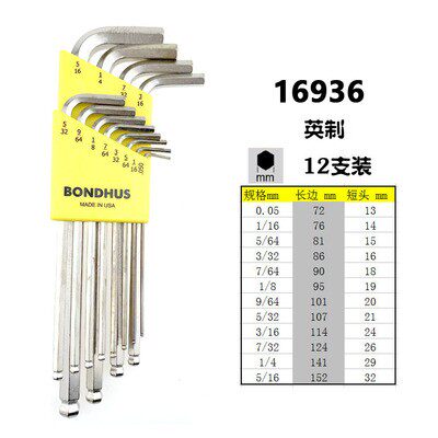 淘宝美国BONDHUS波顿英制加长球头内六角扳手16737 16937 16936内六角