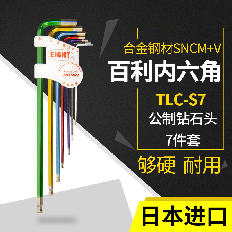 天猫日本进口EIGHT百利内六角扳手套装特长6角六方六棱螺丝刀工具TLC