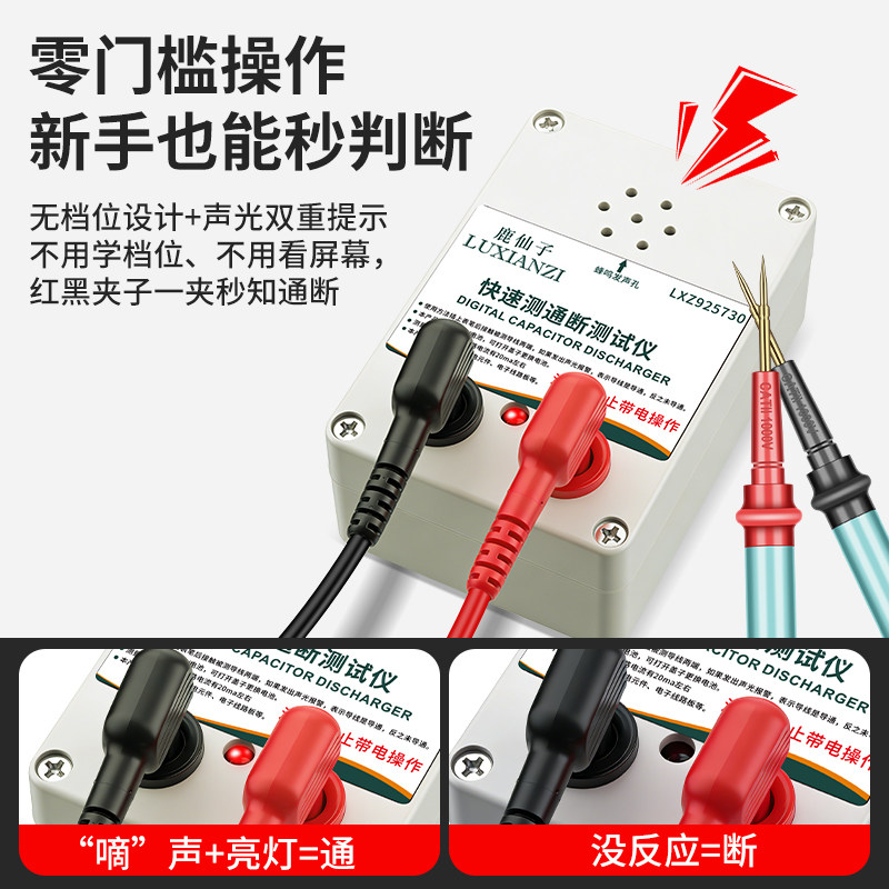 鹿仙子通断测试仪是一款集蜂鸣器提示、短路检测与线路导通测试于一体的多功能查线工具,适用于电工、电子维修及家庭线路排查。其核心功能通过蜂鸣器发声快速判断线路通断,操作简便直观。内置高精度检测电路,可精准识别短路、断路及接触不良等问题,广泛应用于万用表辅助测量、家电维修、汽车电路检测等场景。设备采用低功耗设计,配备LED指示灯与蜂鸣双重提示,确保在嘈杂环境中也能清晰辨识。体积小巧,携带方便,是专业技师和家庭用户的实用检测利器,有效提升线路排查效率与安全性。