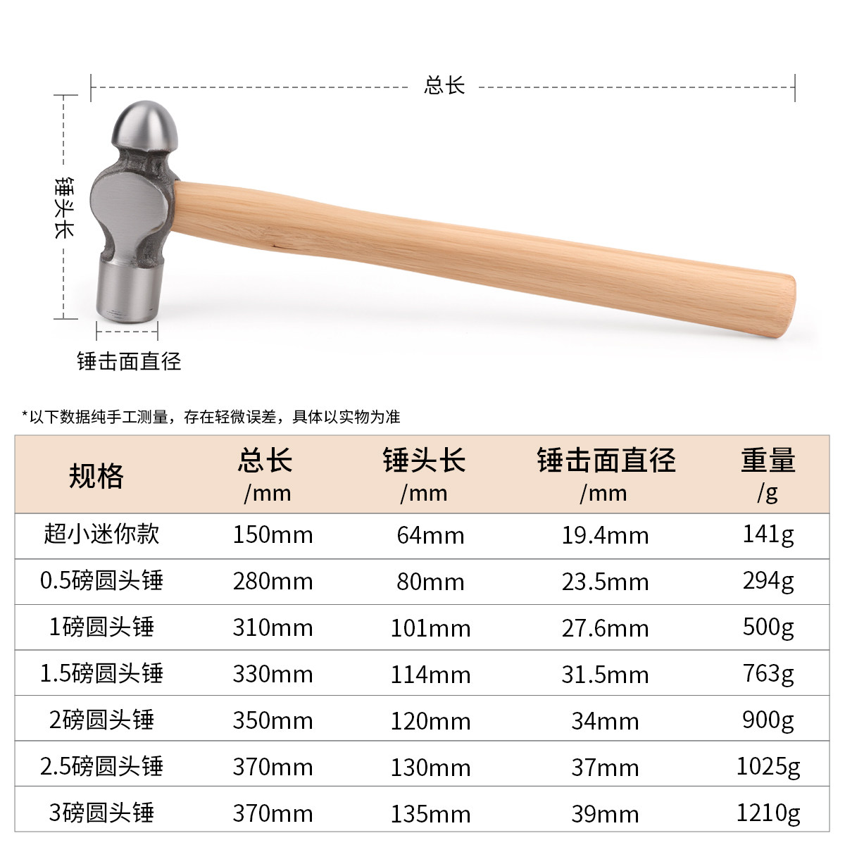 淘宝圆头锤木柄铁锤五金工具家用手锤小榔头奶头锤子木工安装锤奶子锤