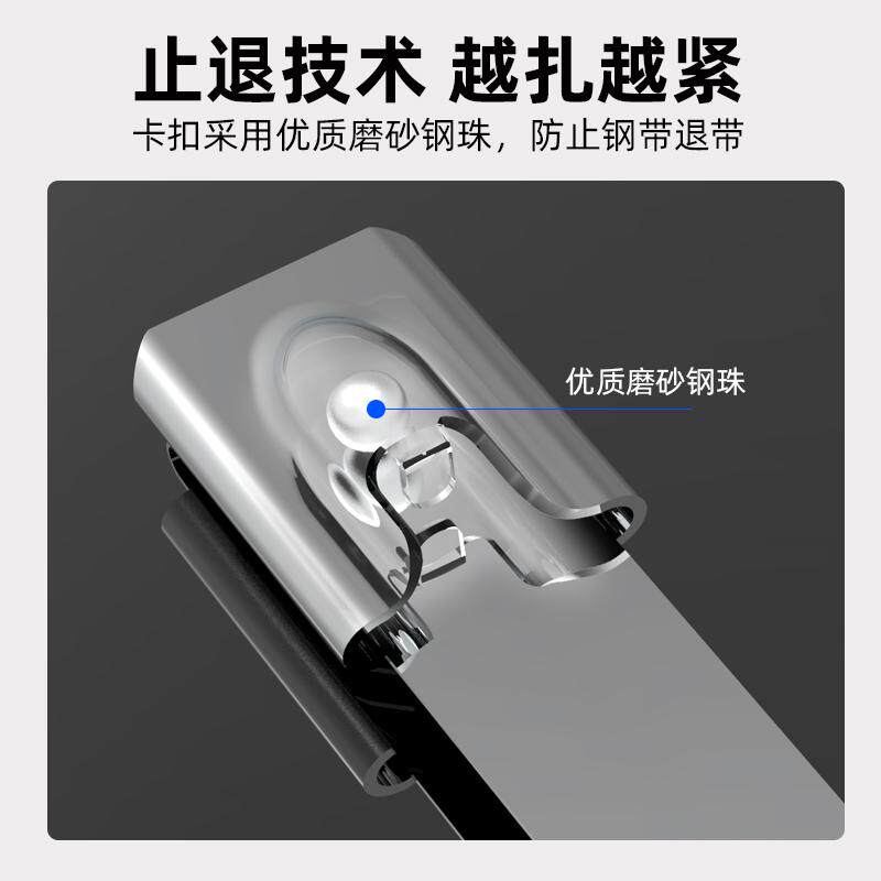 304不锈钢扎带自锁式捆绑抱箍,采用高品质304不锈钢材质,具备优异的耐高温、耐腐蚀性能,适用于户外、工业及潮湿等恶劣环境。带宽10mm或12mm,结构坚固,抗拉强度高,搭配自锁设计,安装便捷且锁紧牢固,不易松脱。广泛应用于电线整理、管道固定、设备捆绑等场景,兼具实用性与耐久性。其金属材质可承受-40℃至500℃温度范围,抗紫外线、抗氧化,使用寿命长。适用于电力、通信、船舶、汽车制造等领域,是户外拉紧与固定作业的理想选择,安全可靠,维护成本低。