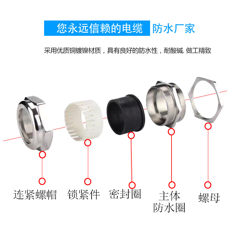 淘宝黄铜镀镍金属电缆防水接头304不锈钢PG格兰头密封固定锁母填料函