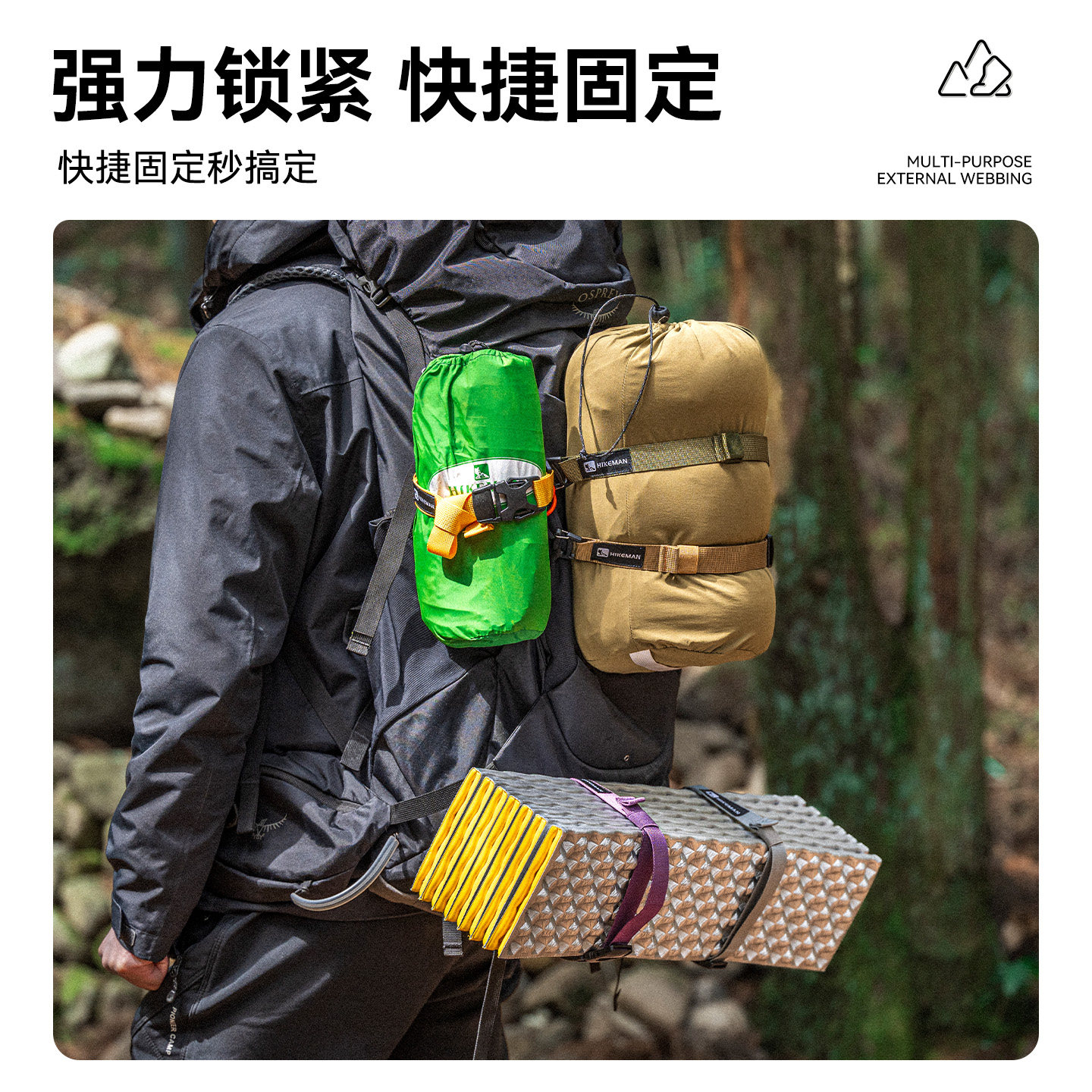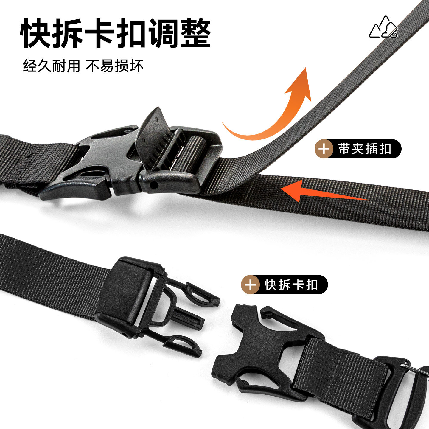 户外多功能战术外挂绑带背包拓展快插卡扣睡袋支架固定延长捆扎带,专为户外探险、徒步露营及战术作业设计。采用高强度尼龙织带与耐磨扣具,承重强、耐用性高,可快速安装于背包、帐篷或装备外部。其模块化设计支持灵活扩展,轻松固定睡袋、防潮垫、登山杖等大件物品,提升携带效率。快拆卡扣实现一秒装卸,适应多变环境需求。捆扎带长度可调节,兼容多种装备系统,是提升户外装载能力与便捷性的理想配件,适用于军警、徒步者及野外生存爱好者,确保装备稳固、行动自如。