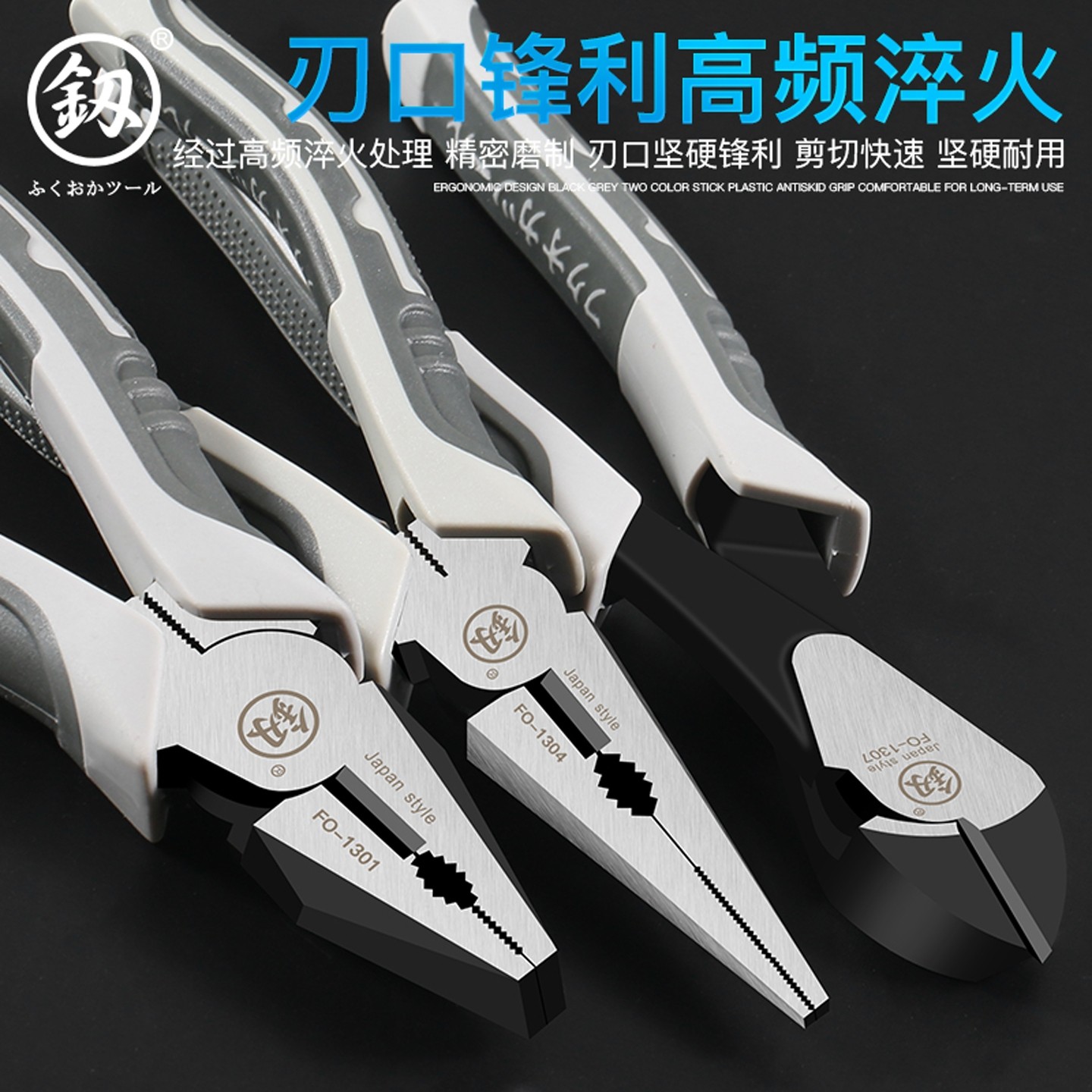 天猫福冈老虎钳子多功能钢丝钳家用小尖嘴钳电工工业级斜口钳大全
