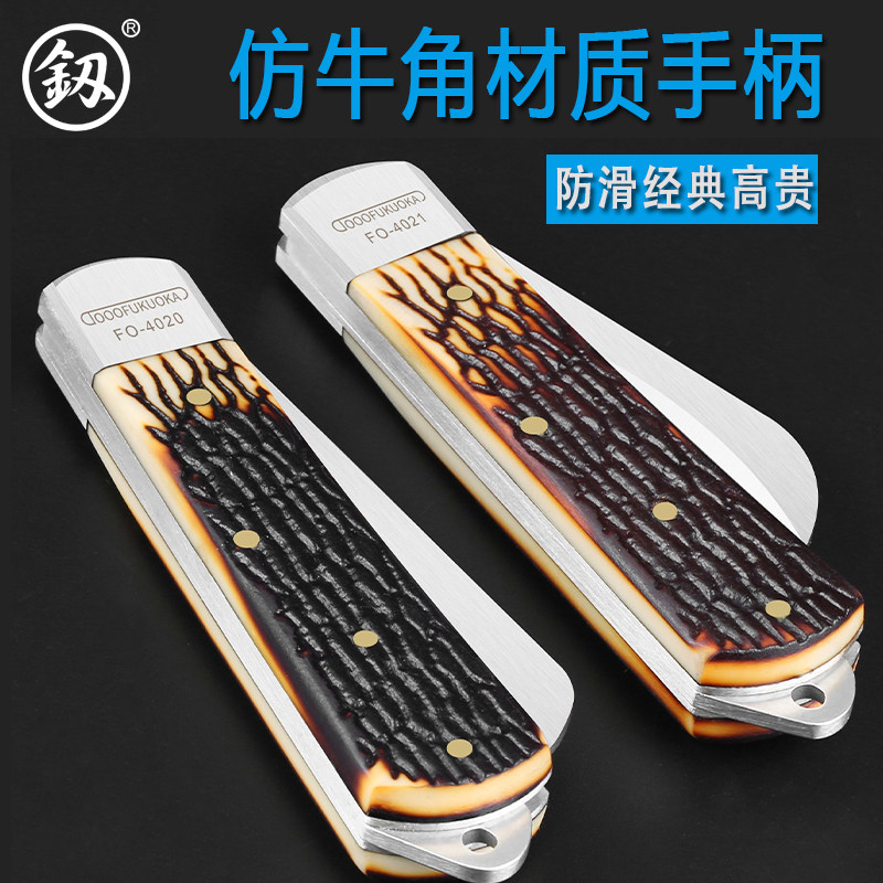 淘宝日本电工刀多功能不锈钢高档直刃弯刃牛角柄折叠剥线刀电缆剥皮刀