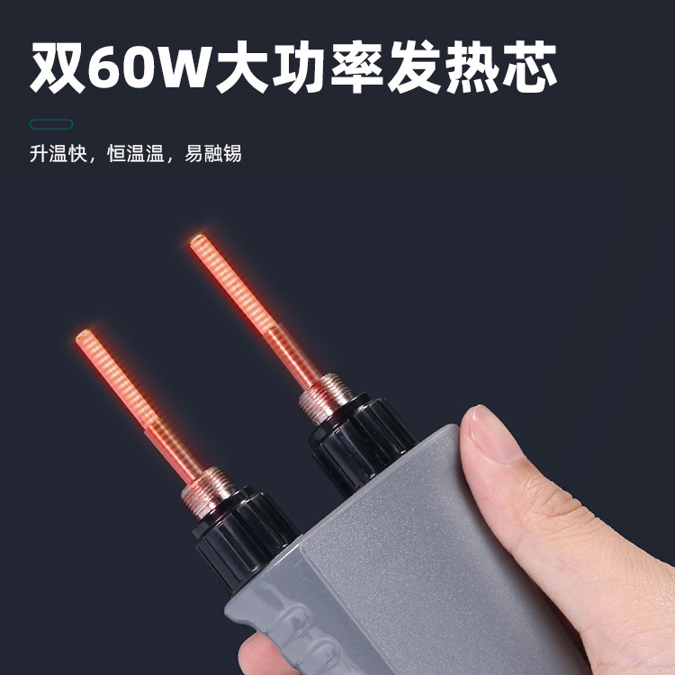 谊华YIHUA 938D是一款便携式双头镗子电烙铁,专为精密电子维修设计。配备恒温数显功能,温度可调范围广(通常200℃~480℃),控温精准,确保焊接安全可靠。独特的双头镊子结构,可同时加热两个焊点,极大提升拆焊效率,尤其适合贴片元件、QFP、BGA等精密器件的操作。内置高效发热芯,升温迅速,响应灵敏。轻量化设计,便于携带,适合维修人员现场作业。配备夹持式拆焊台,操作稳定,减少元件损伤风险。LED数字显示屏实时显示温度,直观便捷。适用于手机、电脑、数码设备等精密电子维修领域,是专业维修工程师的理想工具。