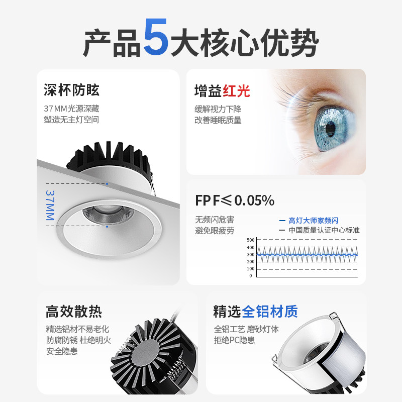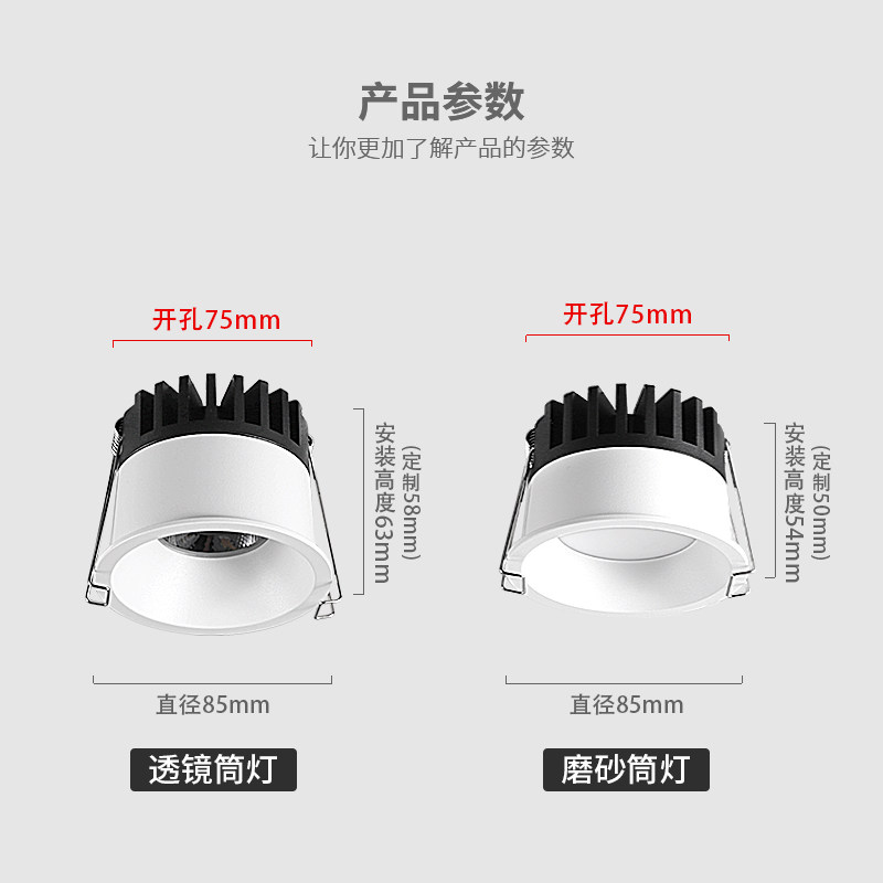 天猫无主灯透镜筒灯嵌入式75mm深杯防眩开孔55护眼led天花灯客厅吊顶
