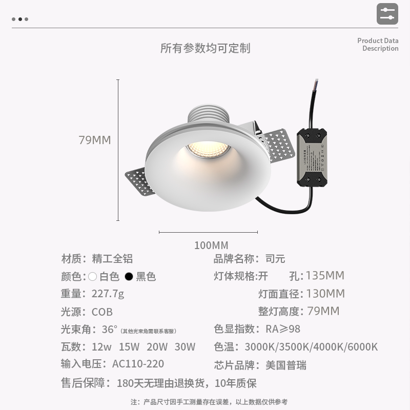 天猫智能全光谱石膏灯led射灯护眼深防眩无边框预埋天花吊顶cob筒灯