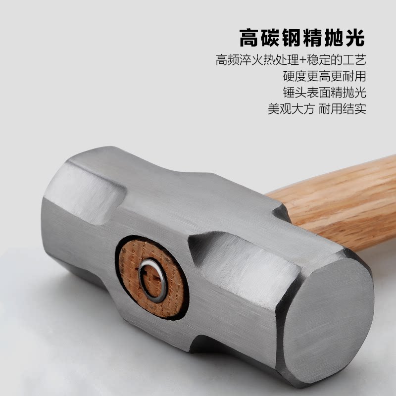 八角锤榔头木柄铁锤子磅6磅8磅10铁锤磅工地砸墙专用电工木工锤子