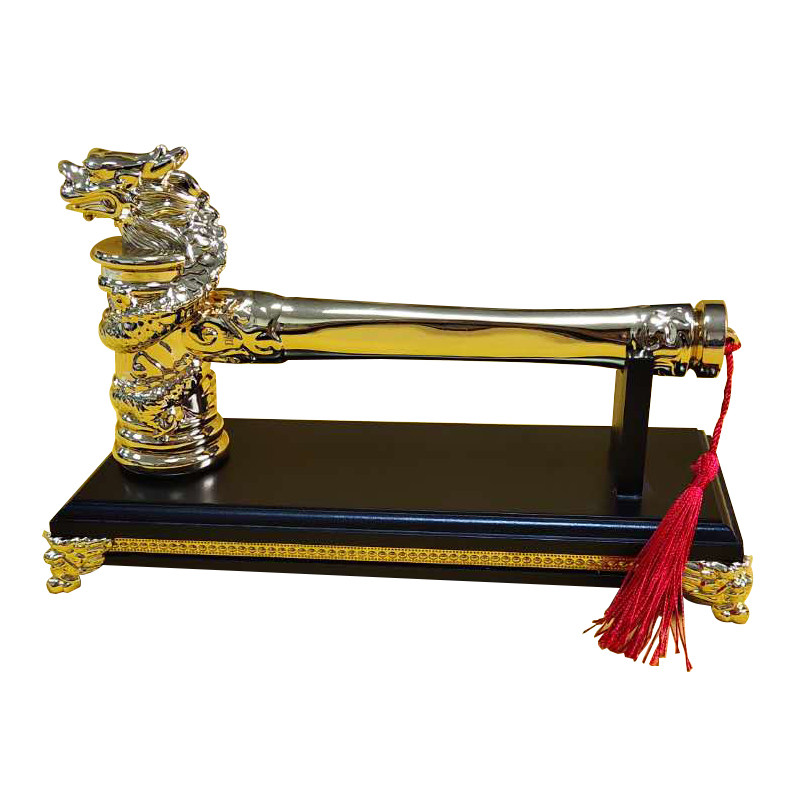 开工锤子装修金色龙头锤,专为装饰公司开工大吉仪式定制。锤身采用优质金属打造,表面镀金工艺,彰显尊贵与品质;锤头精雕龙头图案,寓意“龙行天下、事业腾飞”,象征工程顺利、财源广进。锤面可定制印字,如公司名、项目名称或“开工大吉”等吉祥语,更具纪念意义。搭配砸金蛋环节,增添喜庆氛围,寓意“敲开好运、收获财富”。适用于家装、工装、开业庆典等场合,既是仪式感十足的工具,也是传递美好祝愿的礼品,助力企业开门红,赢得客户信赖与好彩头。