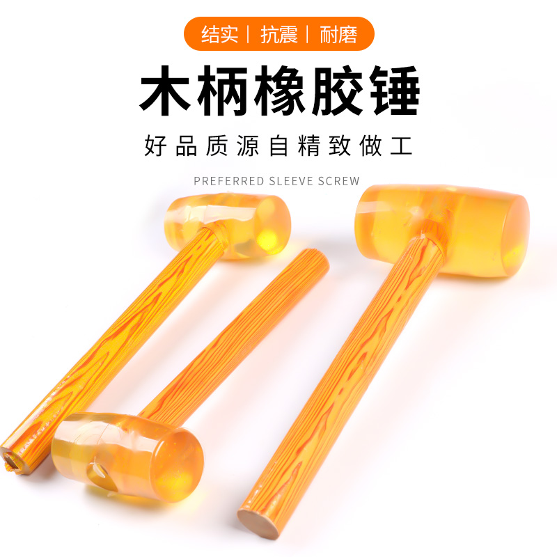 天猫木柄橡胶牛筋锤橡胶安装锤头塑料胶锤子橡皮锤透明榔头包邮