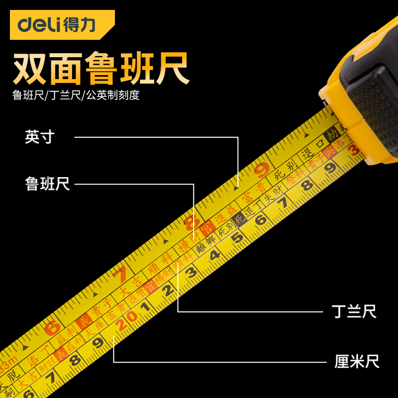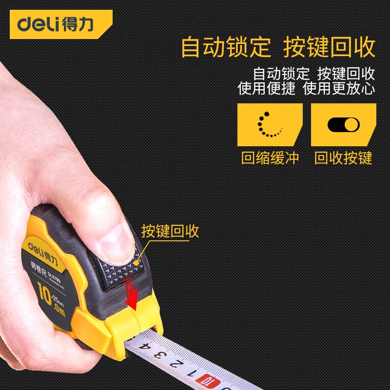 得力卷尺系列涵盖3米、5米、7.5米及10米多种规格,专为家庭日常测量设计,兼顾精准与耐用。采用加厚加硬钢带材质,抗弯折、耐磨损,确保长期使用不变形。尺带表面覆有清晰耐磨涂层,刻度精准易读,支持公制与英制双单位。弹簧机构顺滑收放,自动锁定功能便于固定测量长度,提升操作便捷性。外壳为高强度ABS工程塑料,防摔抗震,握感舒适。无论是装修、家具安装还是日常DIY,得力卷尺都能提供可靠、高效的测量体验,是家庭工具箱中的实用之选。