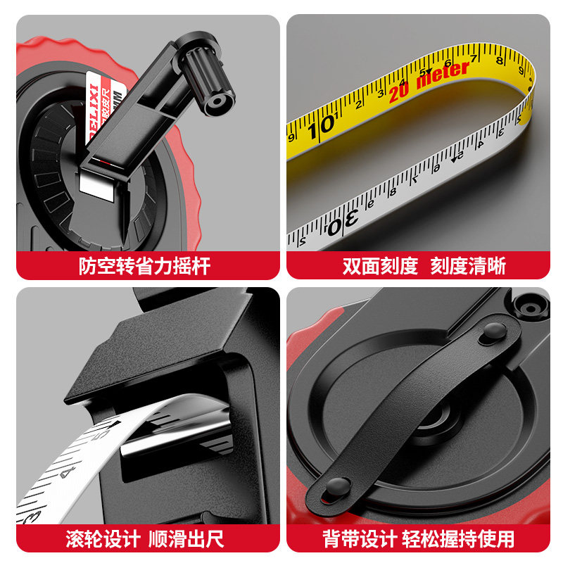 德力西皮尺系列包括50米、100米防滑纤维卷尺及30米布质地尺,专为工程测量、建筑装潢和家庭使用设计。采用高强度防滑纤维材质,耐磨抗拉伸,确保长期使用不变形;尺带表面清晰刻度,读数精准,配备自动回弹装置,收放便捷。100米款特别适用于大范围户外测量,50米款兼顾便携与实用性,30米布尺柔软灵活,适合曲线和不规则表面测量。整体结构坚固耐用,手柄设计符合人体工学,握感舒适。德力西品牌保障品质,是专业施工与日常测量的可靠工具,广泛应用于测绘、装修、裁缝等多个领域,满足多样化测量需求。