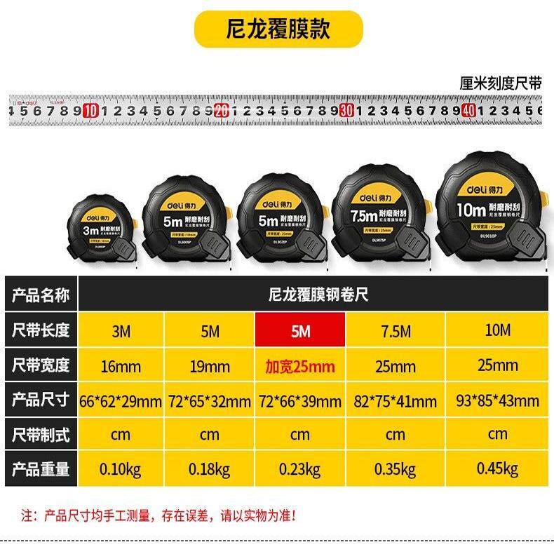 得力卷尺家用钢卷尺3米5米7米10米高精度测量防水耐摔磨圈尺盒尺