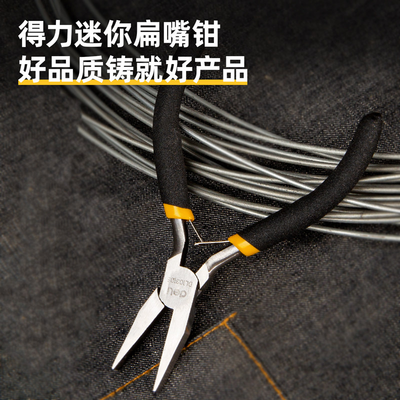 得力迷你尖嘴钳是一款6英寸多功能手工工具,集尖嘴钳、斜口钳、顶切钳等功能于一体,适用于电子维修、模型制作、珠宝加工等精细作业。其精密锻造的钳头锋利耐用,可轻松剪切细金属丝、塑料件及软材料,同时具备夹持、弯曲、整形等多用途。人体工学防滑手柄设计,握感舒适,操作省力。体积小巧,便于携带与收纳,是家庭DIY、工作室及专业技工的理想选择。得力品牌保障品质,坚固可靠,兼具实用性与性价比,满足日常精细作业的多样化需求。