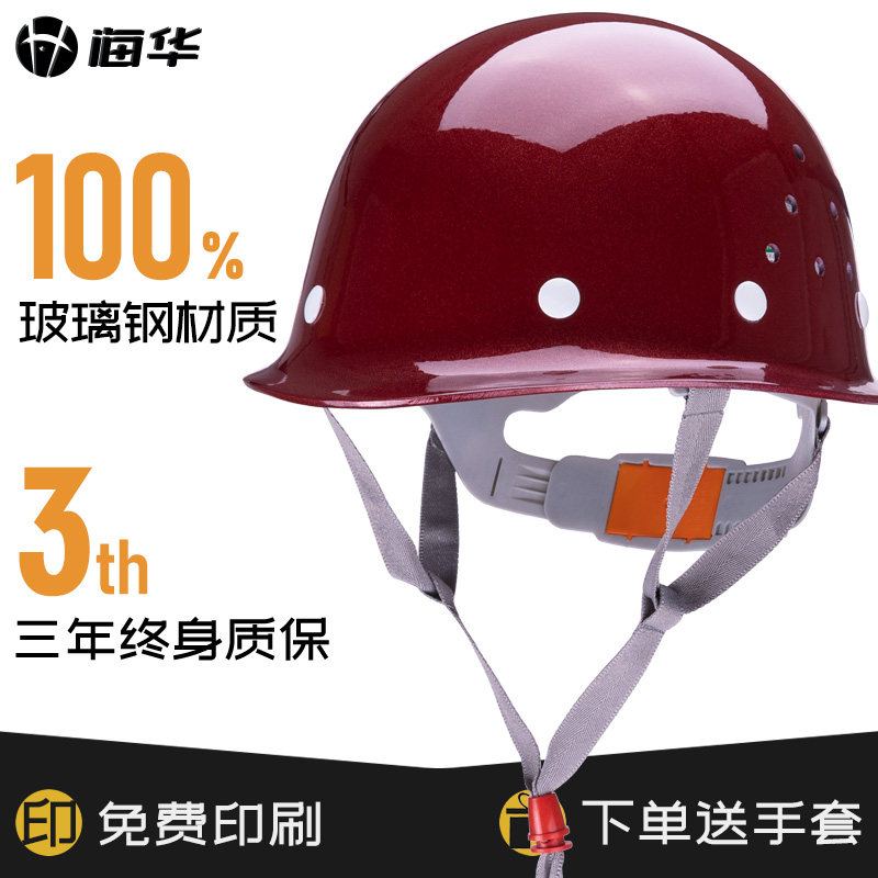 天猫海华B5玻璃钢安全帽工地施工透气工作帽安全帽电工工地头盔印字l