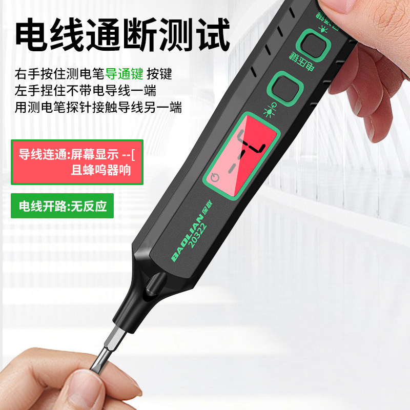保联智能测电笔感应高亮彩光电笔螺丝刀电工专用验电压测线查断点