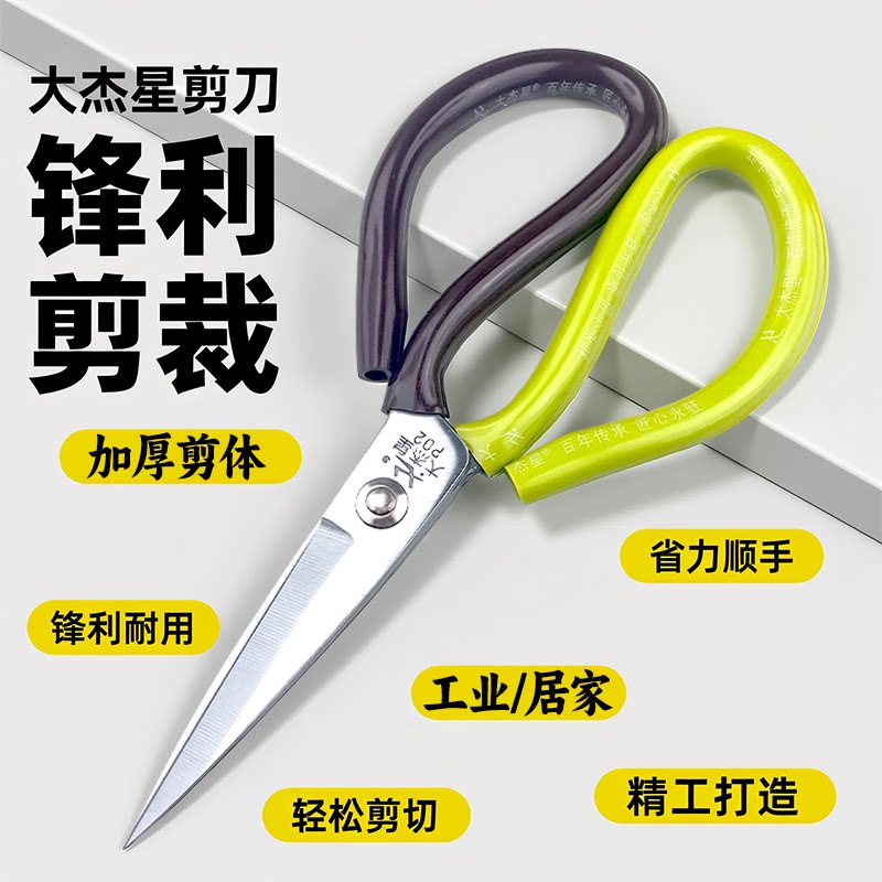 淘宝家用剪工业剪刀厨房办公剪子锰钢皮革裁缝服装大小号尖头剪大杰星