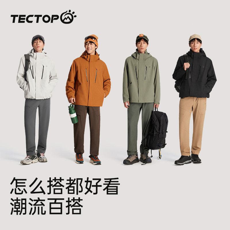 天猫TECTOP探拓户外冲锋衣男2024新款三合一登山服可拆卸防风防水外套