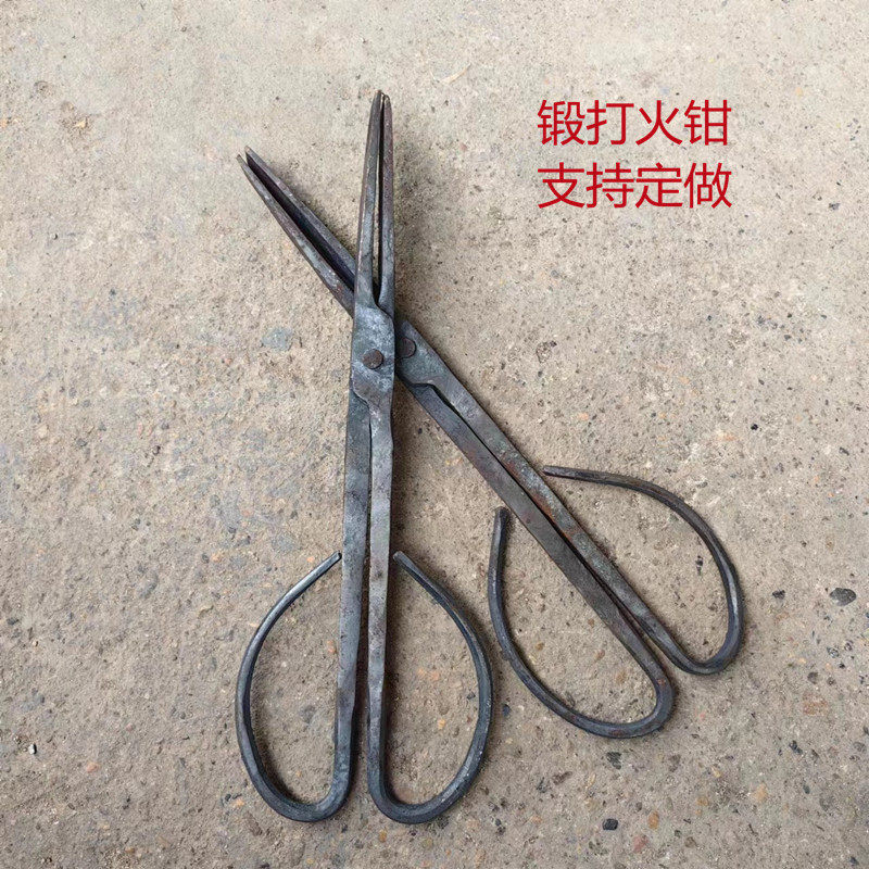 淘宝尖头火钳打铁钳 扁口玻璃夹子 尖嘴高温持物小产品钳子扁头弯把手