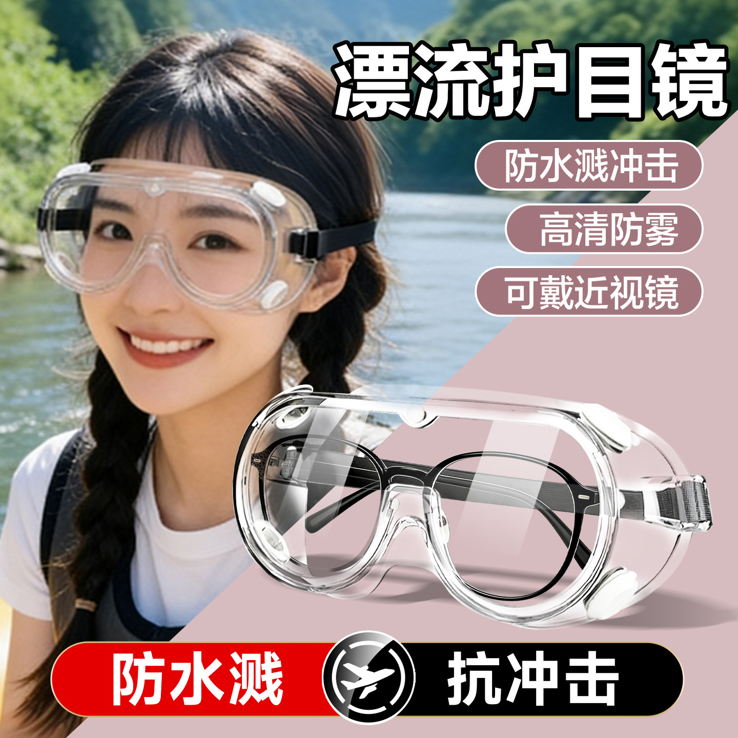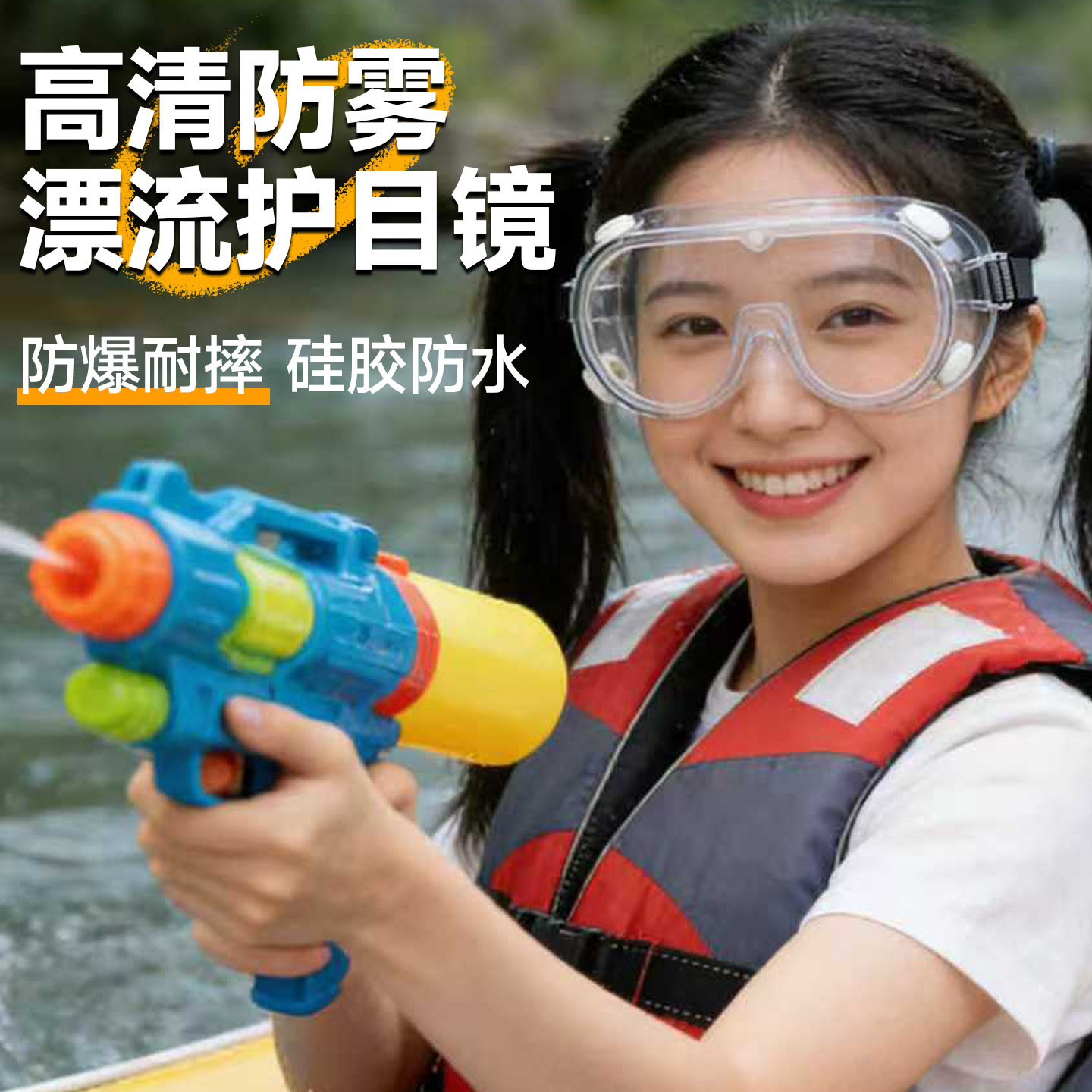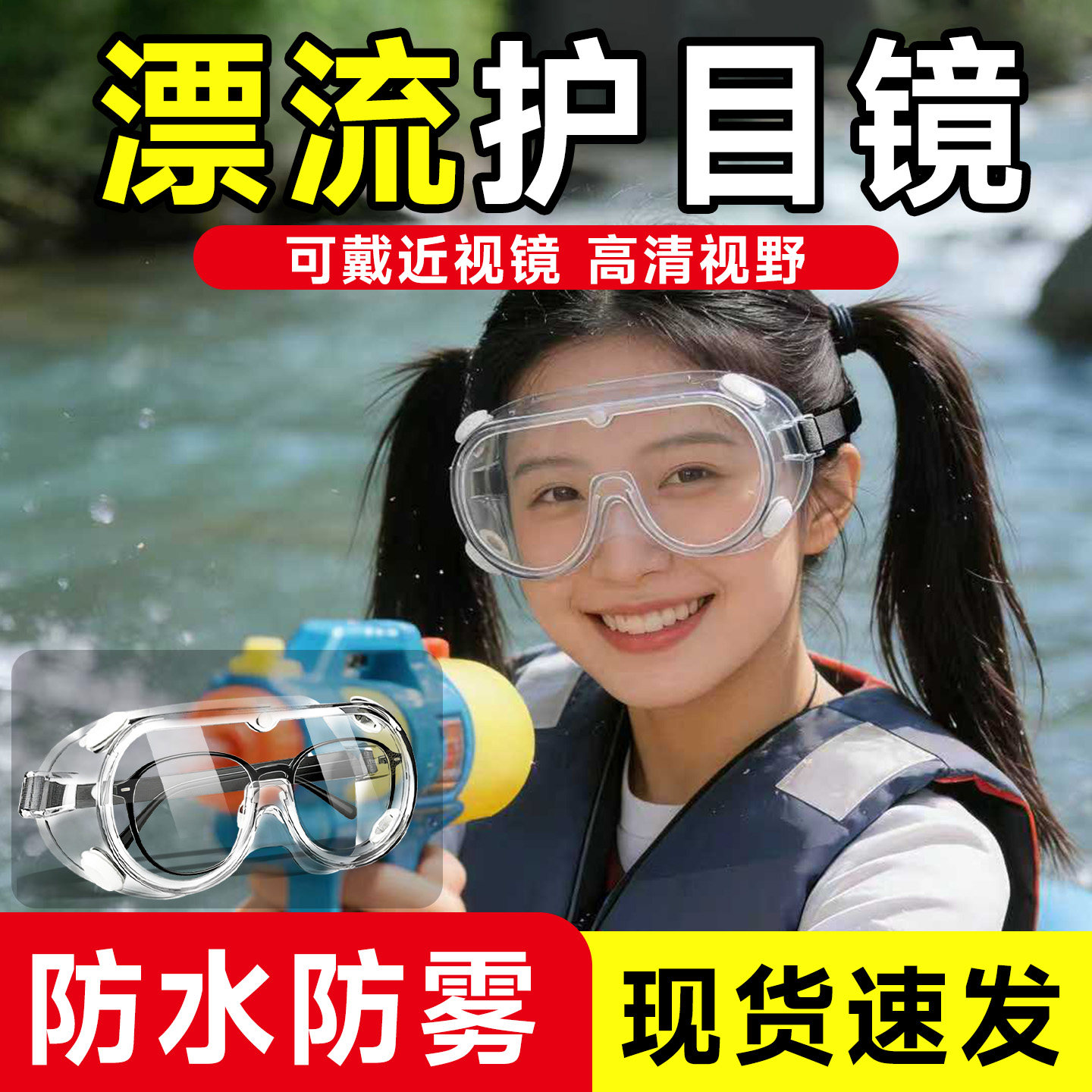 天猫专业漂流护目镜防水防雾高清视野户外水上乐园防护眼镜安全耐用