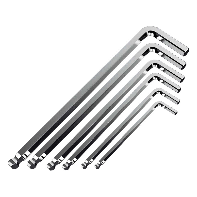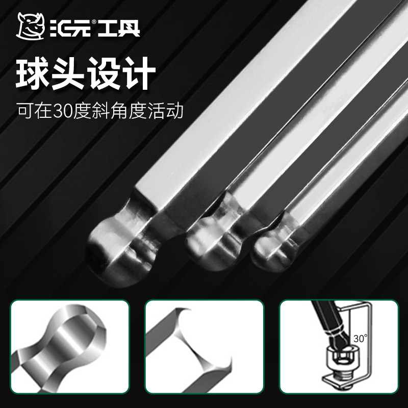 汇元加长球头内六角扳手套装,采用高品质合金钢材质,经加硬热处理,硬度高、耐磨性强,使用寿命长。套装包含1.5至32mm共15种常用规格,L型设计搭配加长球头,可多角度灵活操作,轻松应对狭窄空间或深孔螺丝。球头端可倾斜一定角度拧紧,提升作业效率,直端则提供更大扭力。表面经防锈处理,手感顺滑,不易生锈。适用于家具组装、自行车维修、机械设备保养等多种家用及工业场景。单支出售,方便按需选购,是家庭工具箱和专业维修人员的实用之选。