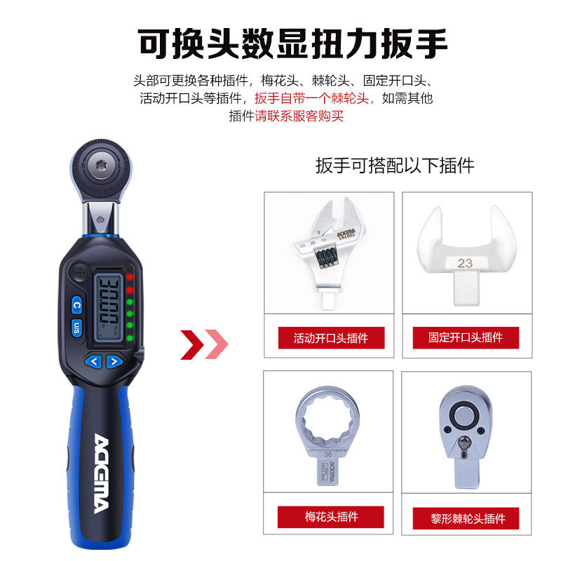 天猫艾德玛数显扭力扳手可换头扭力力矩扳手原装进口棘轮开口头扳手